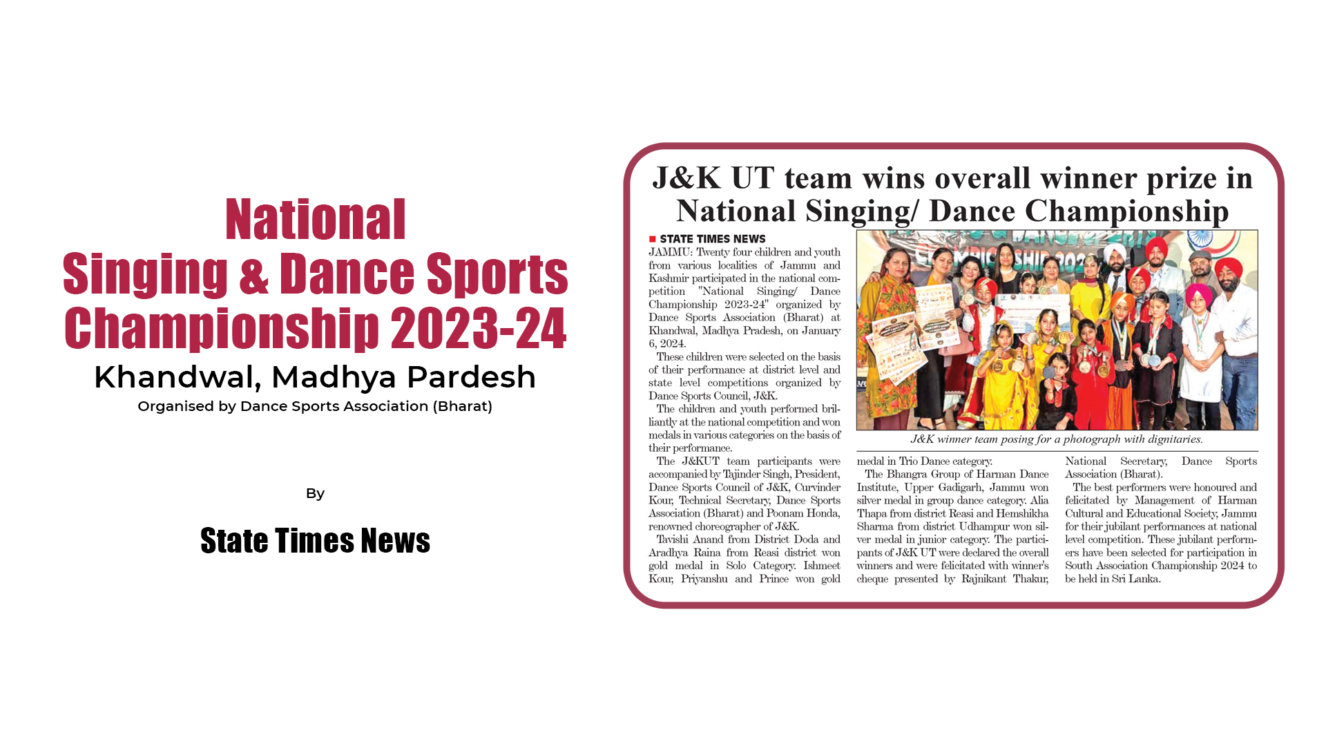 Harman Educational & Cultural Society, Upper Gadigarh, Jammu was established in 2018 with an aim of providing State Level(now UT level), National as well as International Level platform to children and youth from various rural areas and localities of J&K to exhibit their talent in the field of dance and multi sports. Several dance competitions and sports activities were held from 2018 to 2020 all over India and abroad in which several children and youth of various age groups participated and brought laurels for the State and Harman Society. The children and youth of various age groups won Gold, Silver and Bronze medals in various events. The General Body of Society is grateful to parents of the children and youth for their wholehearted cooperation and hope that they will continue to support us for our future activities also. The Members of Society are satisfied with working of present Executive Committee and unanimously decided to retain the same Executive Committee for next two years.